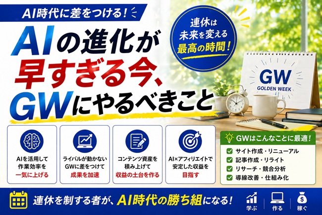 今回は、アフィリエイト初心者のあなたに向けて、 今かなり追い風になっている話をします。 それがです。 最近はAIの話をよく見かけますよね。 でも、こう思っている人も多いはずです。 難しそう。 ・・・[続きを読む]
